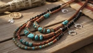 Nos bijoux en pierres naturelles – colliers, bracelets, bagues et boucles d’oreilles – sont conçus pour refléter la force, l’équilibre et la protection que l’on attribue aux minéraux. Les amateurs de mode western et de symbolique spirituelle y trouveront des pièces uniques, parfaites pour sublimer une tenue ou offrir un cadeau chargé de sens.
