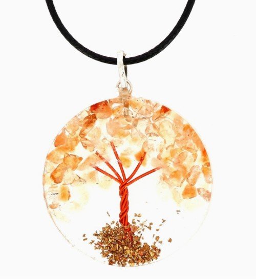 Découvrez l’élégance et la symbolique du pendentif arbre de vie en résine : une création artisanale remarquable où un arbre de vie est subtilement sculpté en fil de cuivre, entouré de véritables pierres naturelles orange, toutes magnifiées par une résine transparente et brillante. Ce bijou unique apporte une touche raffinée et spirituelle à votre look, parfait pour exprimer votre personnalité tout en restant chic.
