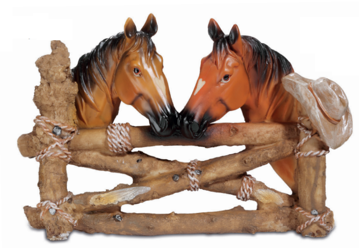 Sublimez votre intérieur avec cette élégante statue décorative représentant deux chevaux réalistes, harmonieusement appuyés contre une clôture en bois au charme rustique. Chaque détail, du mouvement naturel des chevaux au chapeau de cowboy délicatement posé sur le côté, évoque l’authenticité du Far West. Fabriquée avec soin, cette pièce apportera une ambiance chaleureuse et western à votre décoration.