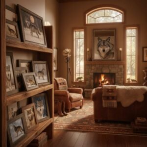 Cadres photos loups et statuettes